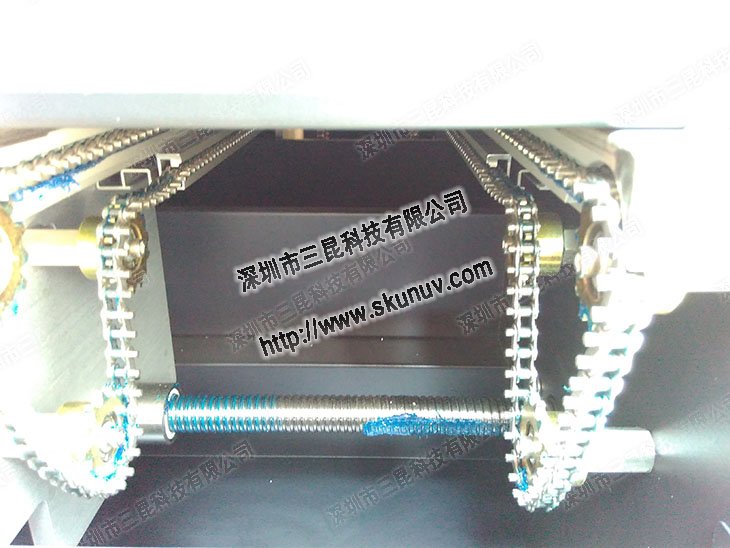 10、保證光固化機器各活動部位的潤滑,主被動托輥、軸承,鏈條和傳動輪應每半年上一次黃油;其他部位及電機一年一次,前后輥、托輥和傳動網咬合部分不允許使用任何潤滑脂。